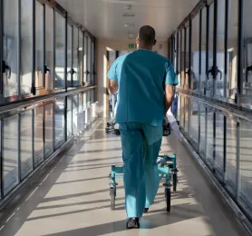 Le dispositif ambuGo permet aux patients valides de se rendre, au sein de l’hôpital, du service ambulatoire au bloc opératoire à pied accompagnés par un brancardier et non plus en brancard.