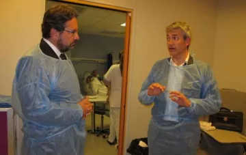 En campagne, Frédéric Lefebvre candidat à la primaire de novembre prochain, s’est rendu à l’Hôpital privé de l’Ouest Parisien à Trappes, pour visiter le service SOS Mains de l’établissement.